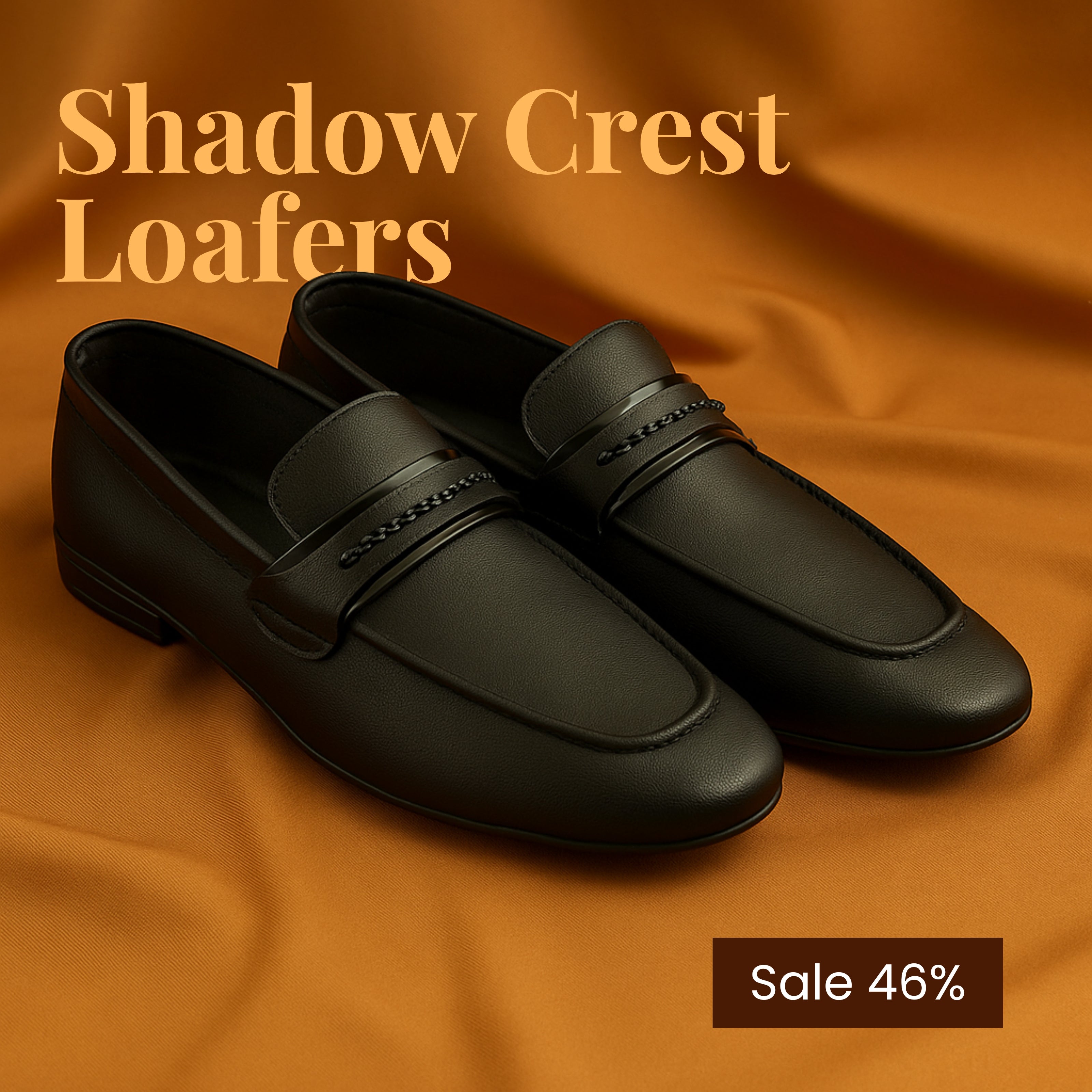 Command attention with understated elegance in the Shadow Crest Loafers. Designed with a rich, textured black upper and accented by a braided strap detail with a glossy metal finish, these loafers offer a refined balance of classic style and modern flair. The soft inner lining and cushioned footbed provide long-lasting comfort, while the durable sole ensures confident steps from office to evening outings.