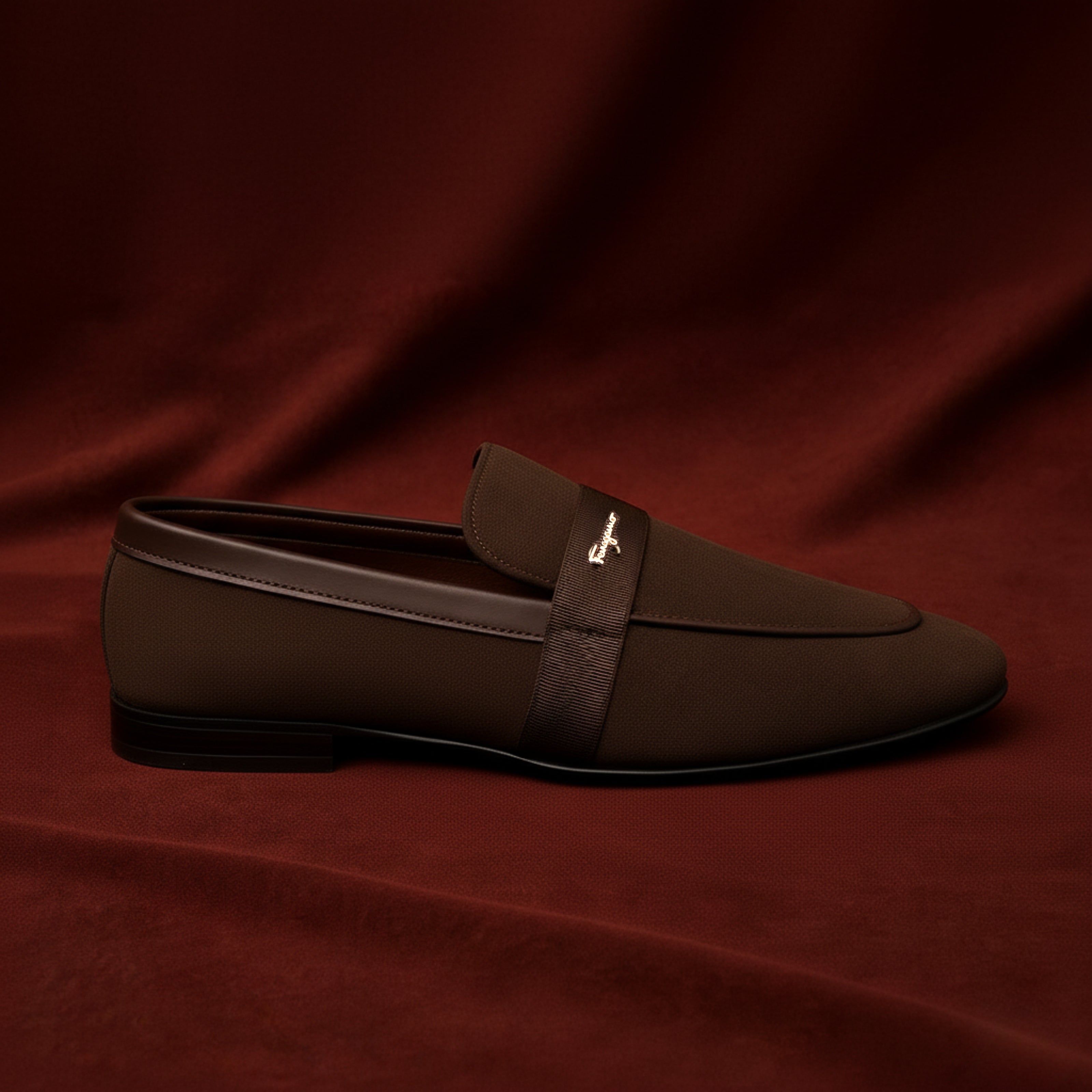 Refined and versatile, the Urban Choco Loafers bring effortless class to any wardrobe. Crafted with a soft suede-textured finish in a rich brown tone, these loafers feature a tonal fabric strap adorned with a subtle metallic emblem for a touch of elegance. The combination of texture and polish makes them an ideal choice for both professional and smart-casual ensembles.